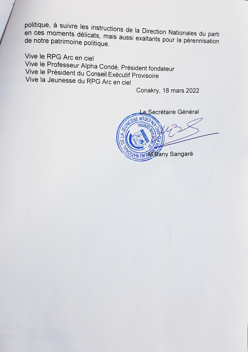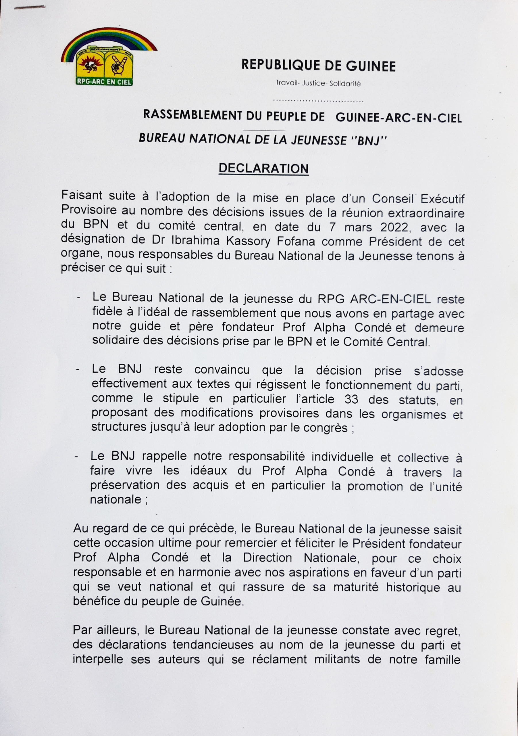 RPG Arc-en-ciel: le Bureau National de la Jeunesse approuve la désignation de Kassory (Déclaration)
